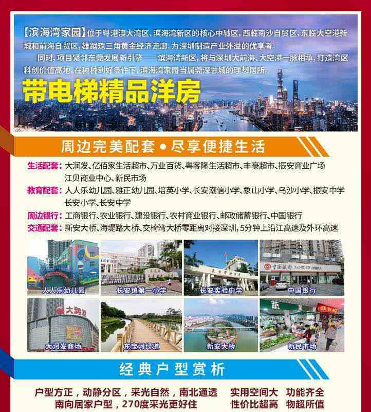 > 东莞长安新民小产权房《滨海湾家园》与沙井一桥之隔 临深电梯洋房 可分期5年