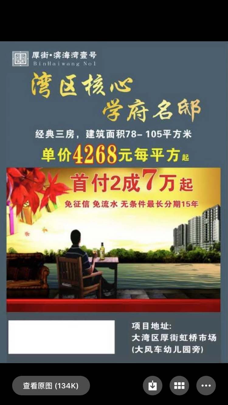 东莞厚街《滨海湾壹号》地铁口小产权房 首付7万买湾区核心大三房 可首付2成分期15年