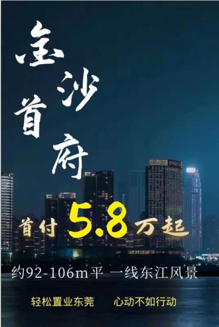 > 东莞石碣沙腰统建楼《金沙首府 》一线江景房 空中花园带停车场 楼层任选首付三成