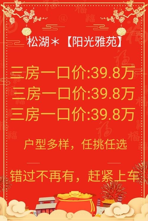 > 大朗中心蔡边统建楼《松湖阳光雅苑》总价39.8万不分楼层朝向 任挑任选