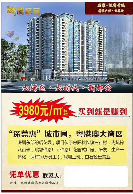 > 惠州白石《龙腾豪苑》14号线地铁口小产权房 均价3980元起